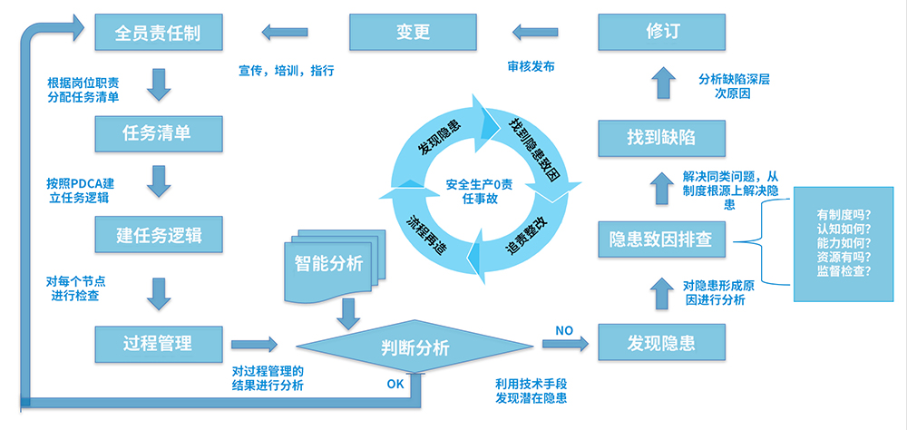 安全生產(chǎn)零事故為企業(yè)量身定做,讓企業(yè)主動(dòng)履行安全生產(chǎn)主體責(zé)任。通過“制度任務(wù)化”、“任務(wù)流程化”和全過程管控+智能化預(yù)警”實(shí)現(xiàn)全員“行為習(xí)慣化”,逐級(jí)實(shí)現(xiàn)個(gè)人、崗位、部門、企業(yè)“從個(gè)體安全到總體安全”。達(dá)到安全生產(chǎn)職能責(zé)任清晰,任務(wù)內(nèi)容準(zhǔn)確,操作流程詳實(shí),每個(gè)流程的要求和條件明確,全過程可查詢、可追溯。