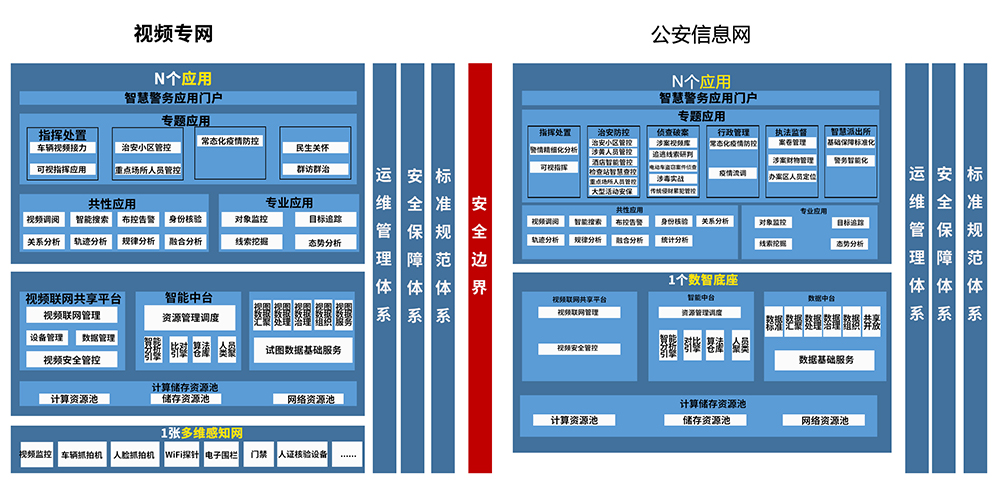 智慧警務(wù)大數(shù)據(jù)平臺基于雙網(wǎng)進(jìn)行建設(shè),視頻專網(wǎng)側(cè)重于視頻圖像數(shù)據(jù)采集、存儲、解析、處理,開展實(shí)時(shí)性要求較高的視頻圖像應(yīng)用;公安信息網(wǎng)側(cè)重與公安業(yè)務(wù)數(shù)據(jù)融合,開展安全性要求較高、強(qiáng)關(guān)聯(lián)分析的智能化應(yīng)用。