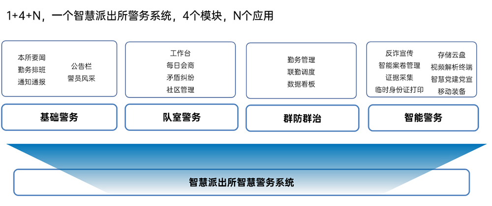 智慧派出所建設(shè)方案以智慧警務(wù)平臺(tái)為主線,從基礎(chǔ)警務(wù)→隊(duì)室警務(wù)→智能警務(wù),全面建設(shè)智慧型派出所。