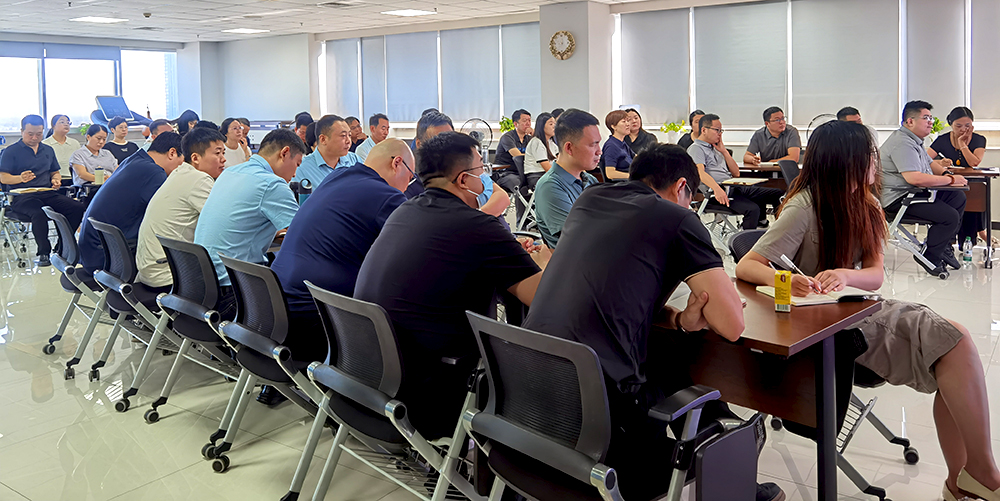 會議開場,主持人銷售中心副總經理陳沖首先對上半年銷售團隊業(yè)績及整體排名進行通報,展示了各行業(yè)條線任務完成情況。并指出2025年的銷售業(yè)績與往年同期比基本持平,行業(yè)項目雖然普遍面臨預算縮減、周期拉長等共性問題,但我們的銷售團隊頂住壓力,與研發(fā)、技術等部門互相配合,找到客戶痛點和瓶頸,充分發(fā)揮我們的技術特長,為客戶提供最優(yōu)質的解決方案,得到了客戶高度認可,為銷售業(yè)績的達成奠定了基礎。